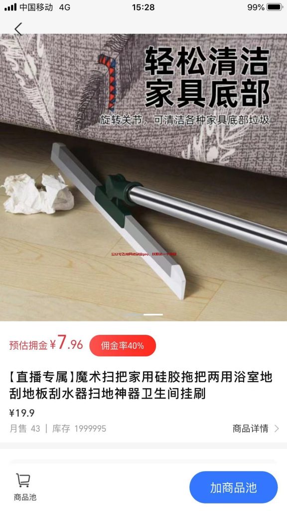 比如像这个硅胶拖把,19.9,佣金有40%,一单差不多8块,还是可以的