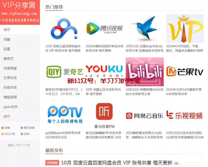 比如上面那个网站里面有大量的各平台的会员账号,这些账号是站长免费发放出来的,我们在做这个副业项目的时候,也可以把它们当做一个很好地参考对象。