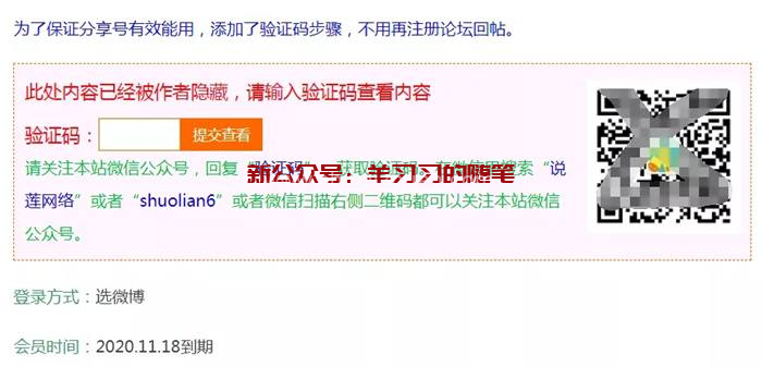 像这个网站,就要求用户关注公众号,并且在公众号回复对应关键词获得验证码,才可以看到分享的内容。