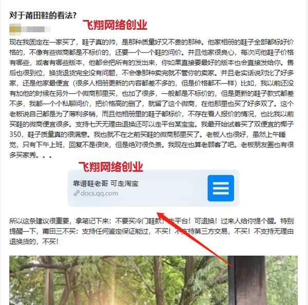 平台现在的算法越来越智能,对于违规词会直接发现删除。所以更多的同行们换了一种玩法,用在线文档的链接做植入。