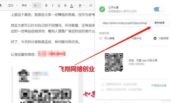 我们在写完在线云文档里模仿同行,写完文章之后,复制链接。