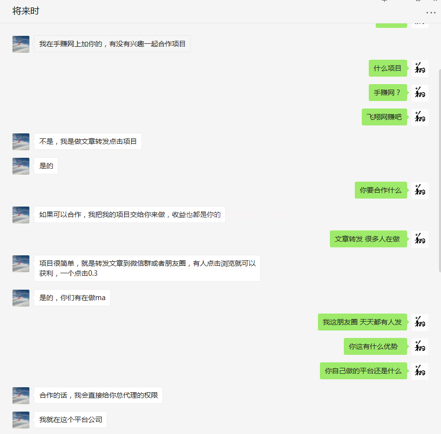 2.可以和一些团队合作,分享你的利润给团队老大,这样团队老大才有机会和你合作,此种合作主要是互补形式,比如一些团队之前做的是S单的领域,他没做过这种手机赚钱转发的项目,那么可以谈一下合作的事项。不要认为新手就无法和一些团队进行合作,谋事在人成事在天,尽自己努力去做,就有一定的几率能成功