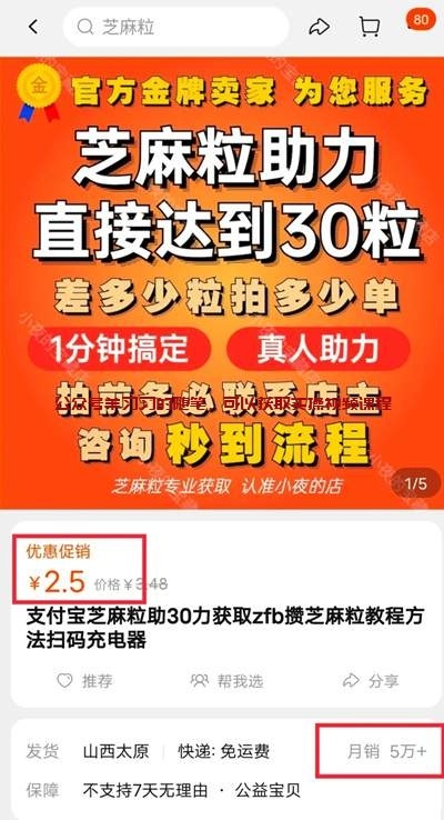 图中可以看到,销量第一的月销5W,第二月销2W。按照单价2.5元一粒计算,一般修复一次逾期记录需要30个芝麻粒,相当于每修复一次逾期记录的需要75块钱
