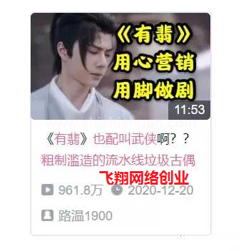 比如,前段时间,我在B站看过一个视频,叫做《<有翡>也配叫武侠?粗制滥造的流水线垃圾古偶》,当时看的时候,播放量已经过百万了,现在的播放量已经达到九百多万!