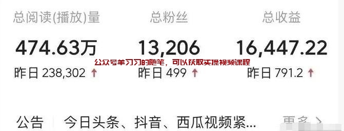 中视频计划赚的就是流量收益,流量大,赚的就多,所以要选择用户群体大的领域去发布视频