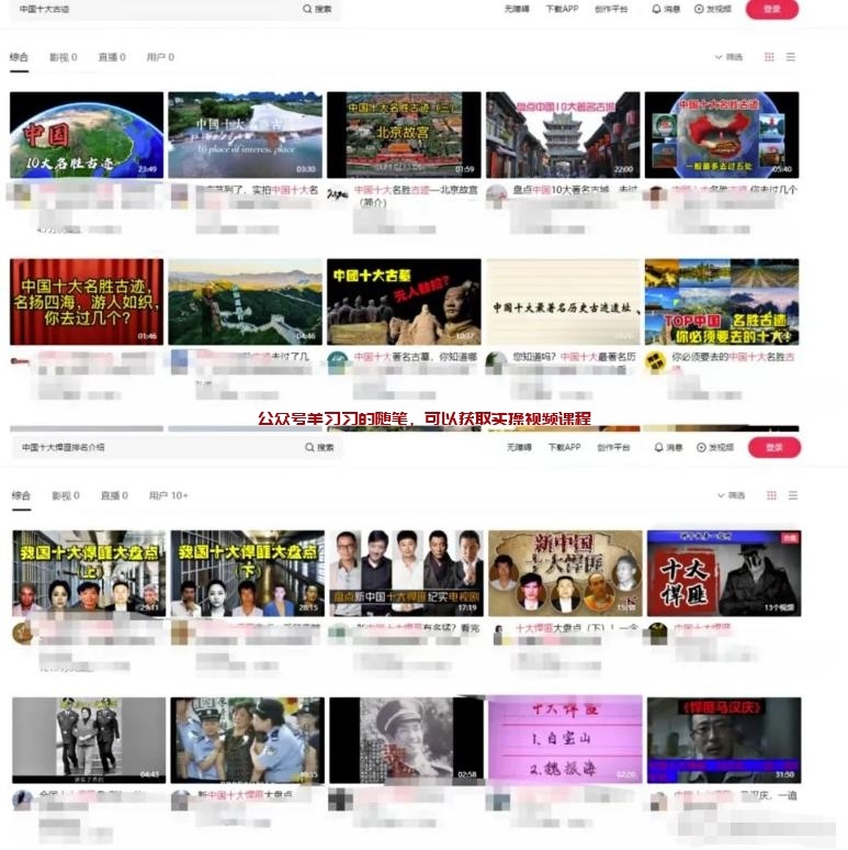这些选题非常受大众群体的欢迎,基本观看的群体不分男女和年龄段。另外素材内容这一块也是非常多的,例如:名菜小吃、全国的名胜古迹、明星大佬、互联网等等,都可以做成十大**之类的